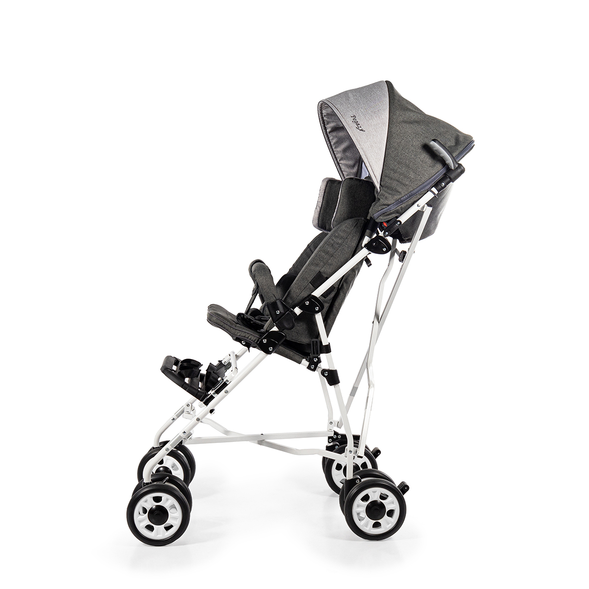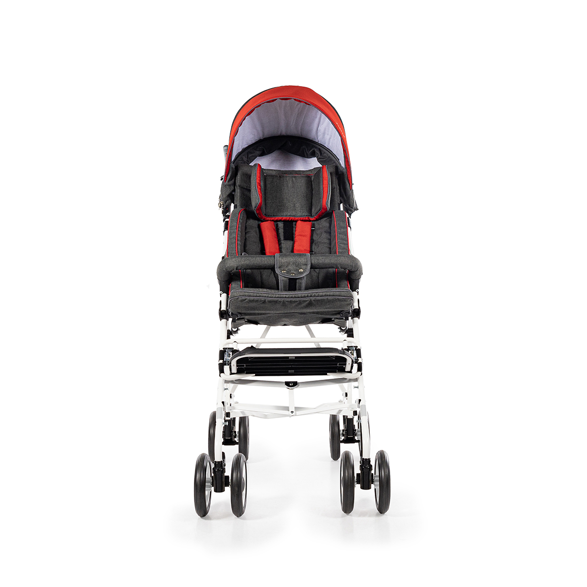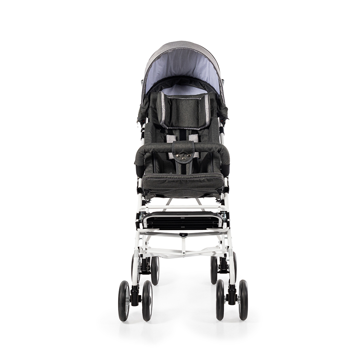 The construction of the Pegaz special needs stroller is based on a lightweight and compact umbrella-type frame, which allows for quick and simple folding and unfolding. The stroller can be folded without removing the upholstery, which makes everyday use, transport, and storage easier.