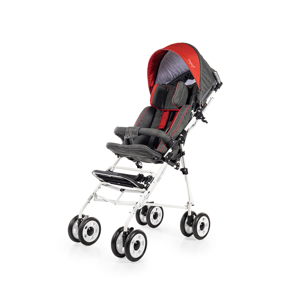 The Pegaz special needs stroller is designed for children (80–140 cm, up to 40 kg). It is a lightweight, compact umbrella-type stroller with a weight starting at just 10 kg.