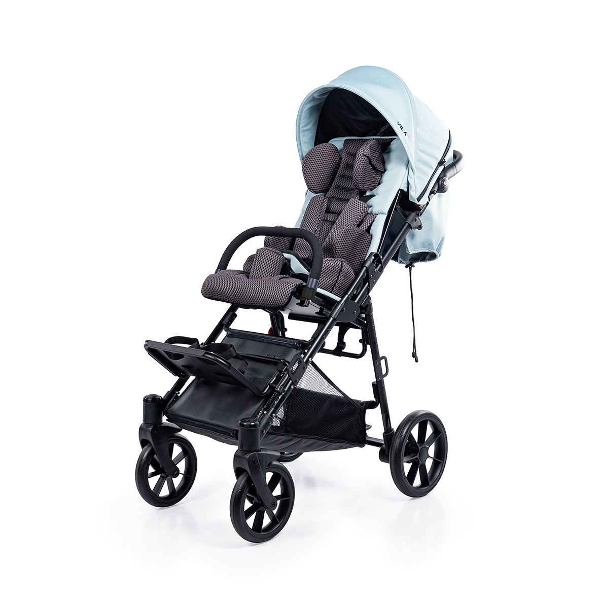 Thanks to the option of using adjustable pads, an abduction wedge, abduction-stabilizing belts, and a five-point belt, Vila provides safe and comfortable support during walks. A wide selection of accessories facilitates daily functioning and increases comfort regardless of weather, while the stroller’s modern appearance emphasizes its universal and aesthetic character.
