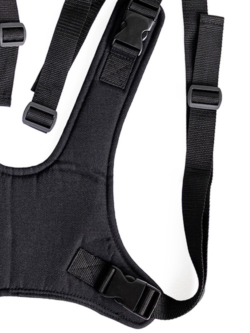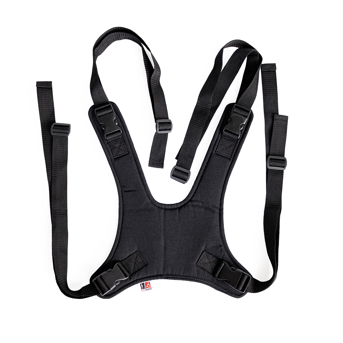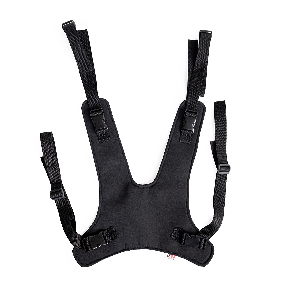 Kamizelka zabezpieczająca chroni przed wypadnięciem z wózka lub fotelika oraz wspiera prawidłową stabilizację tułowia. Jej ergonomiczny kształt zaprojektowano tak, aby zapewniał pewne trzymanie, jednocześnie nie wywierając nacisku na szyję i pozwalając na swobodne oddychanie i ruch.