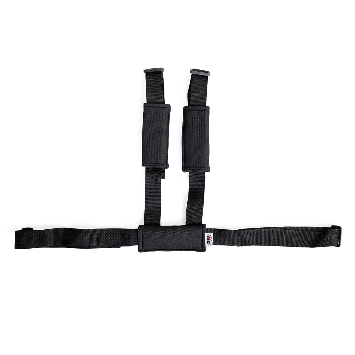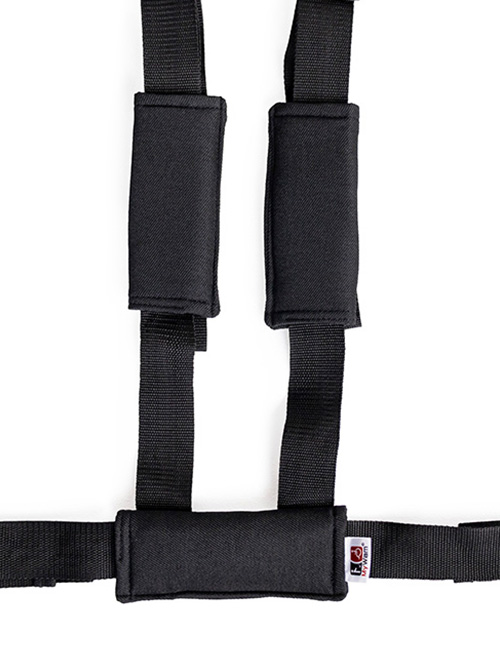 Pas czteropunktowy zapewnia solidne i pewne zabezpieczenie użytkownika w wózku lub foteliku. Miękka osłona na zapięciu zwiększa komfort i zapobiega uciskowi, a czteropunktowa konstrukcja stabilizuje ciało w sposób równomierny i bezpieczny.