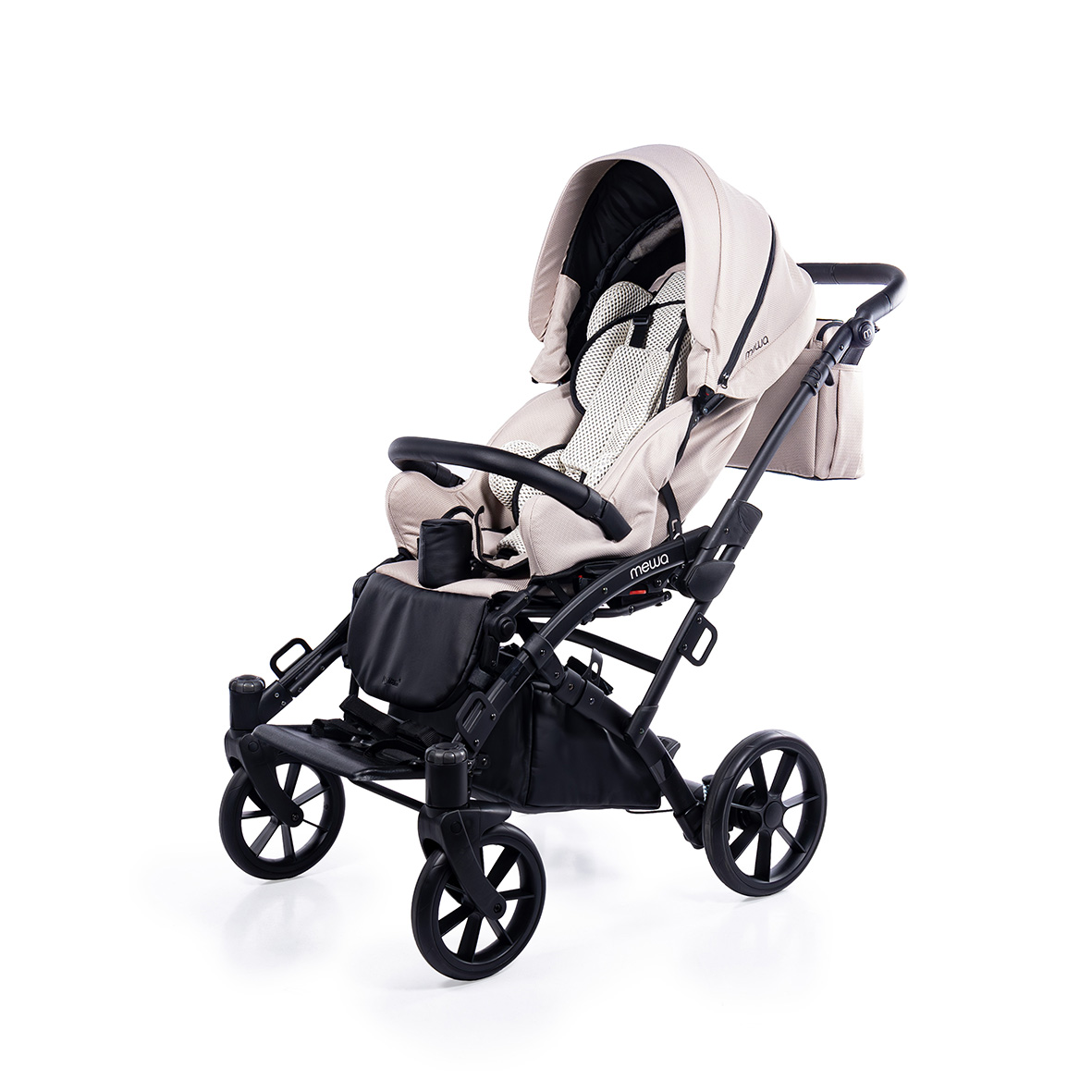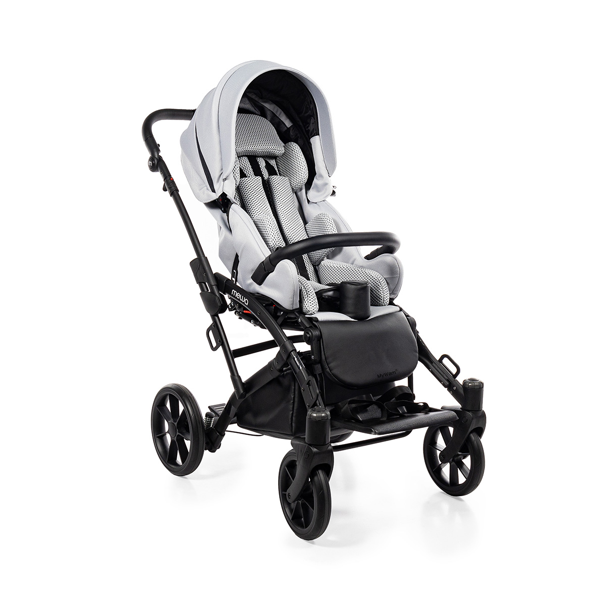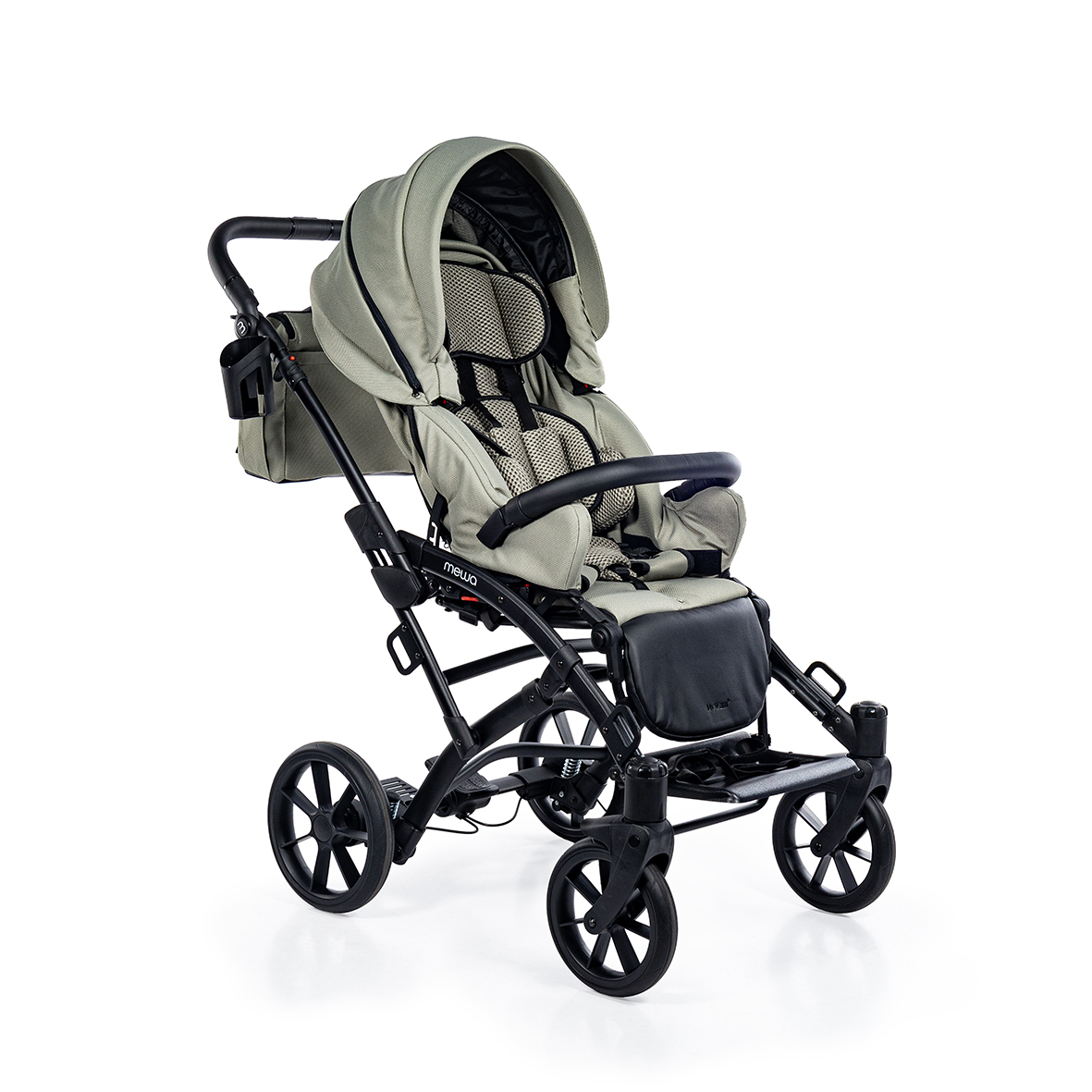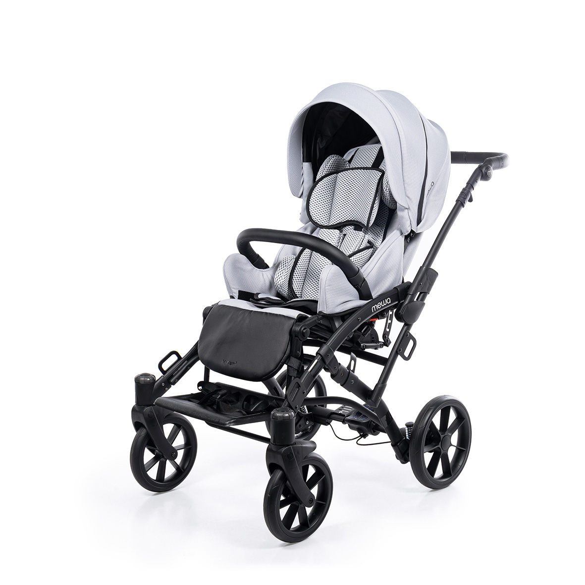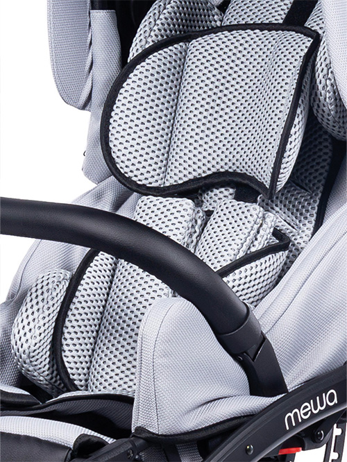 Dzięki możliwości zastosowania regulowanych pelot, wkładki zwężająco-spłycającej, klina, pasów odwodząco- stabilizujących oraz pasów pięciopunktowych, Mewa zapewnia bezpieczne i wygodne wsparcie podczas spacerów. Bogata oferta akcesoriów ułatwia codzienne funkcjonowanie i zwiększa komfort użytkowania niezależnie od pogody, a nowoczesny wygląd wózka podkreśla jego uniwersalny i estetyczny charakter.