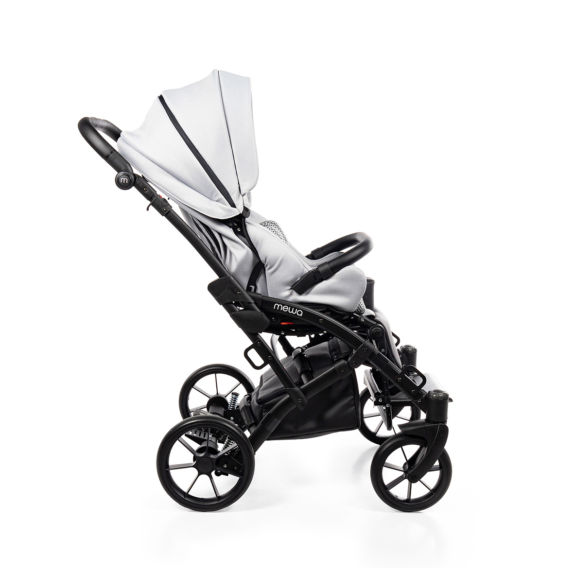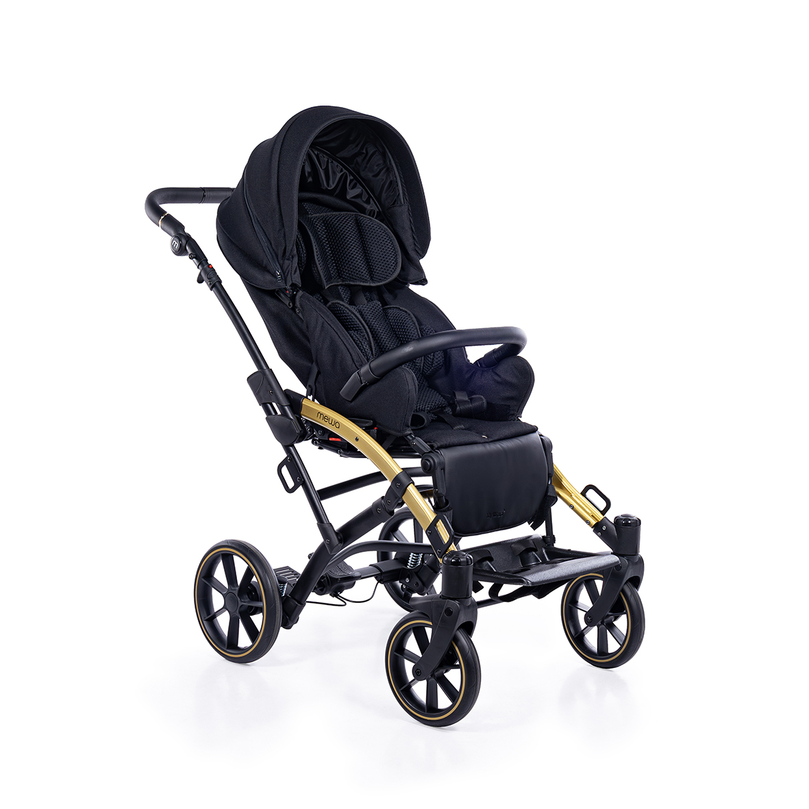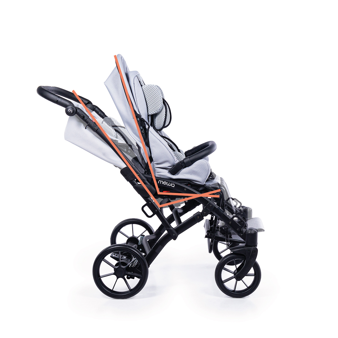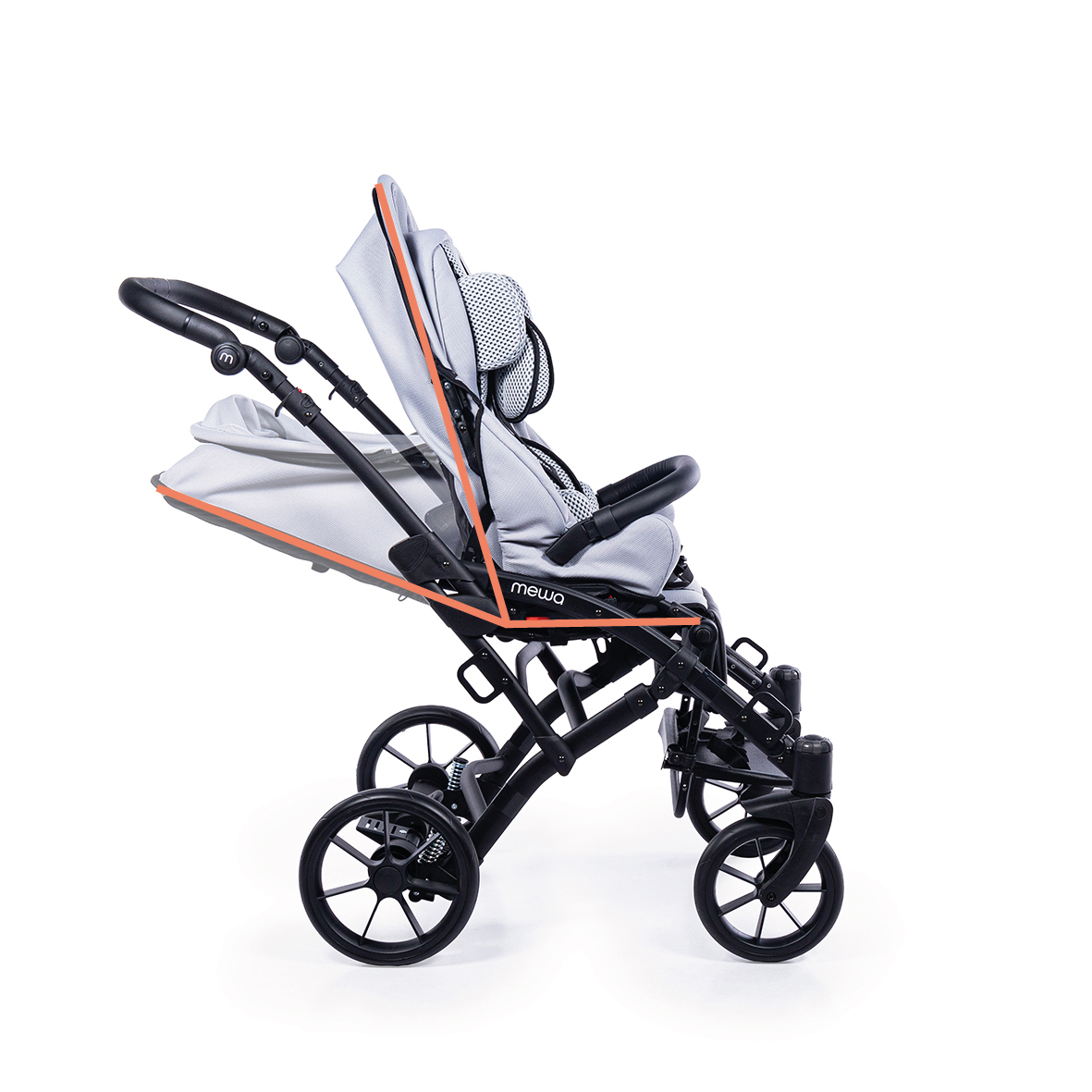Dzięki możliwości zastosowania regulowanych pelot, wkładki zwężająco-spłycającej, klina, pasów odwodząco- stabilizujących oraz pasów pięciopunktowych, Mewa zapewnia bezpieczne i wygodne wsparcie podczas spacerów. Bogata oferta akcesoriów ułatwia codzienne funkcjonowanie i zwiększa komfort użytkowania niezależnie od pogody, a nowoczesny wygląd wózka podkreśla jego uniwersalny i estetyczny charakter.