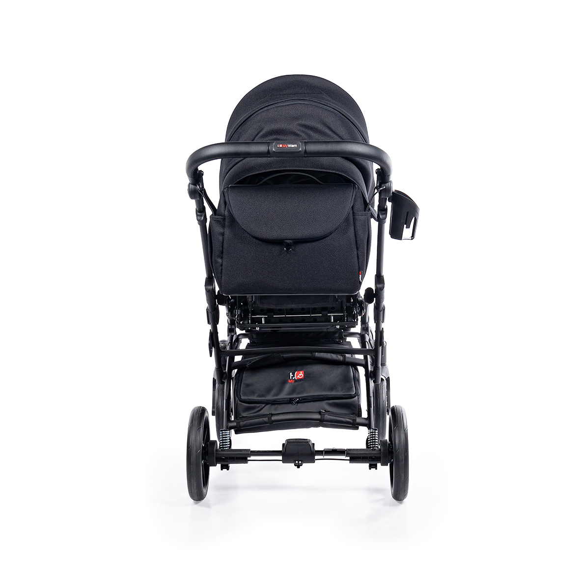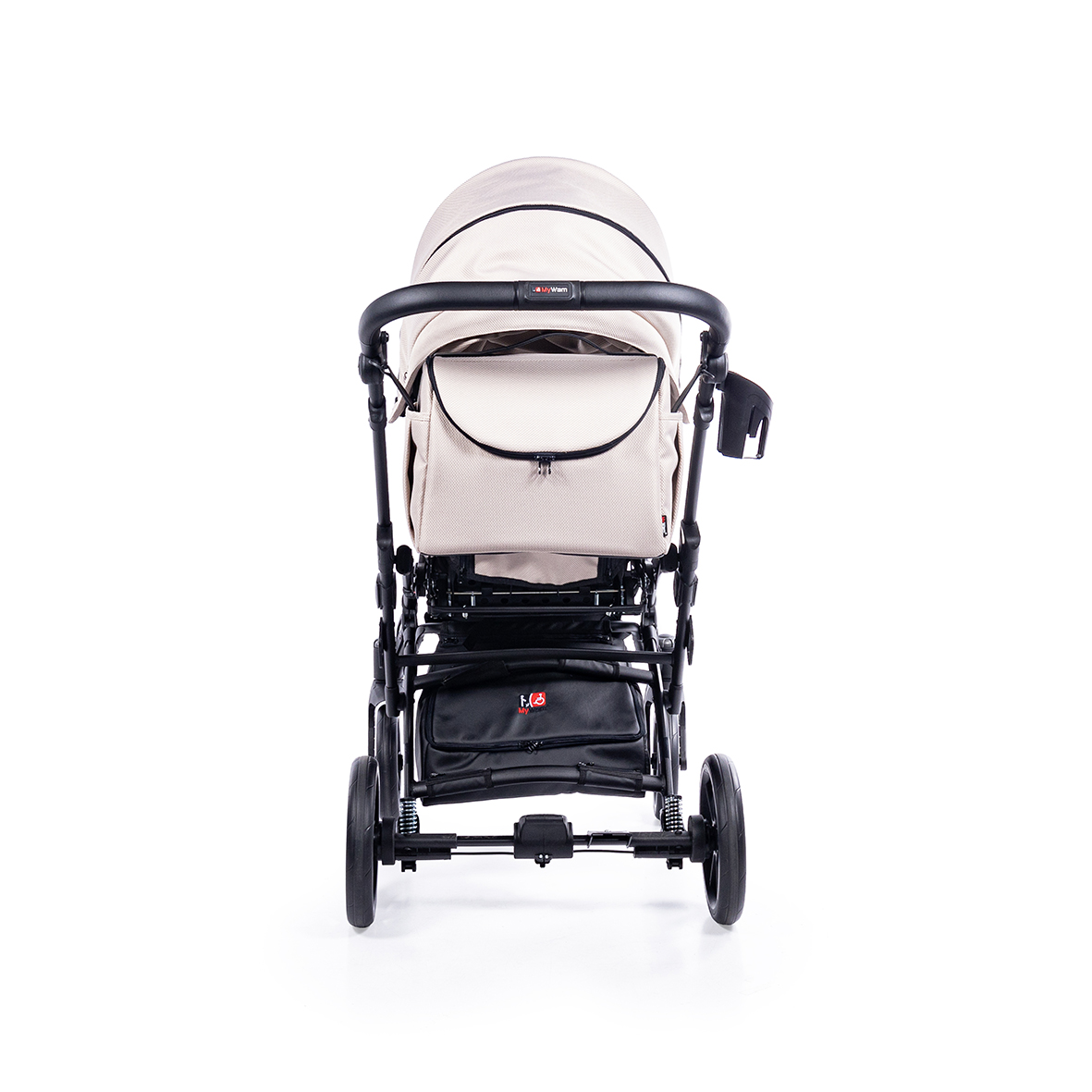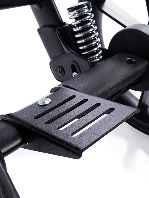 Tylne koła wyposażone są w system amortyzacji, który skutecznie redukuje drgania podczas jazdy po nierównym terenie. Gwarantuje to większy komfort dziecka oraz płynność prowadzenia wózka.
