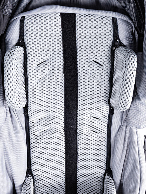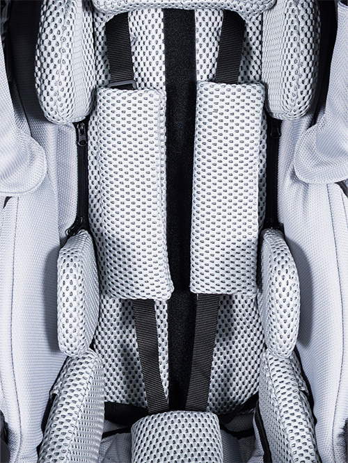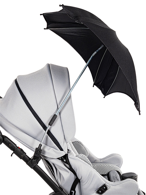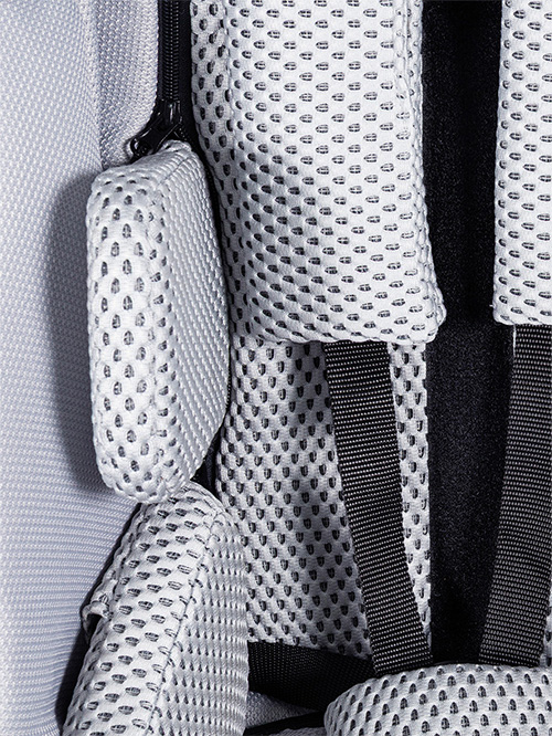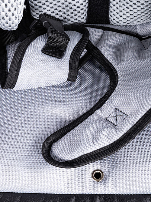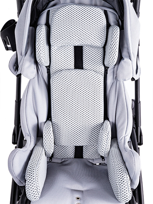 We wnętrzu wózka oraz przy wybranych akcesoriach zastosowano materiał o strukturze siateczki, który wspiera naturalną cyrkulację powietrza. Dzięki temu wnętrze wózka pozostaje odpowiednio wentylowane, a użytkownik ma zapewniony komfort termiczny nawet podczas dłuższego użytkowania.
