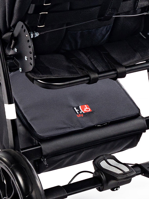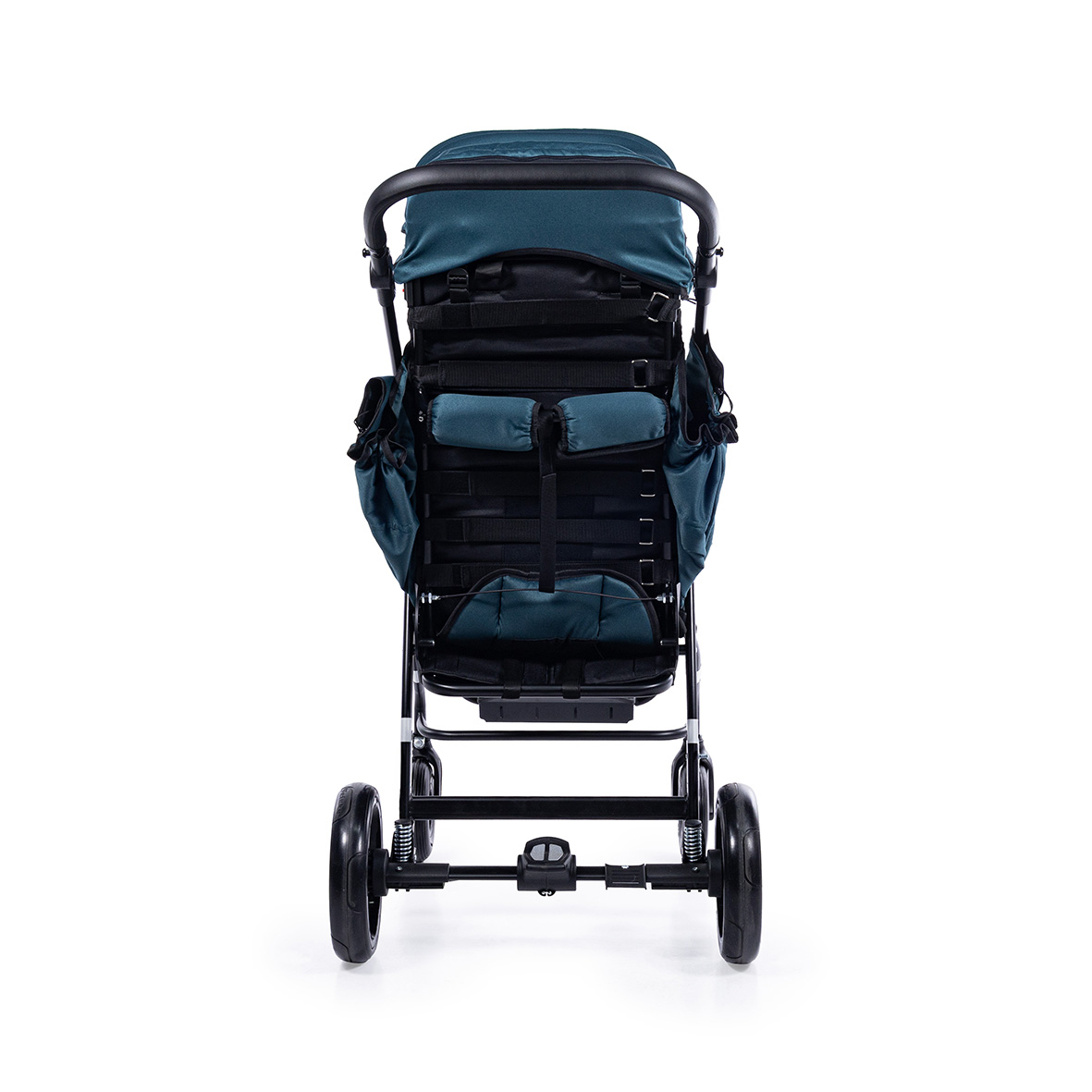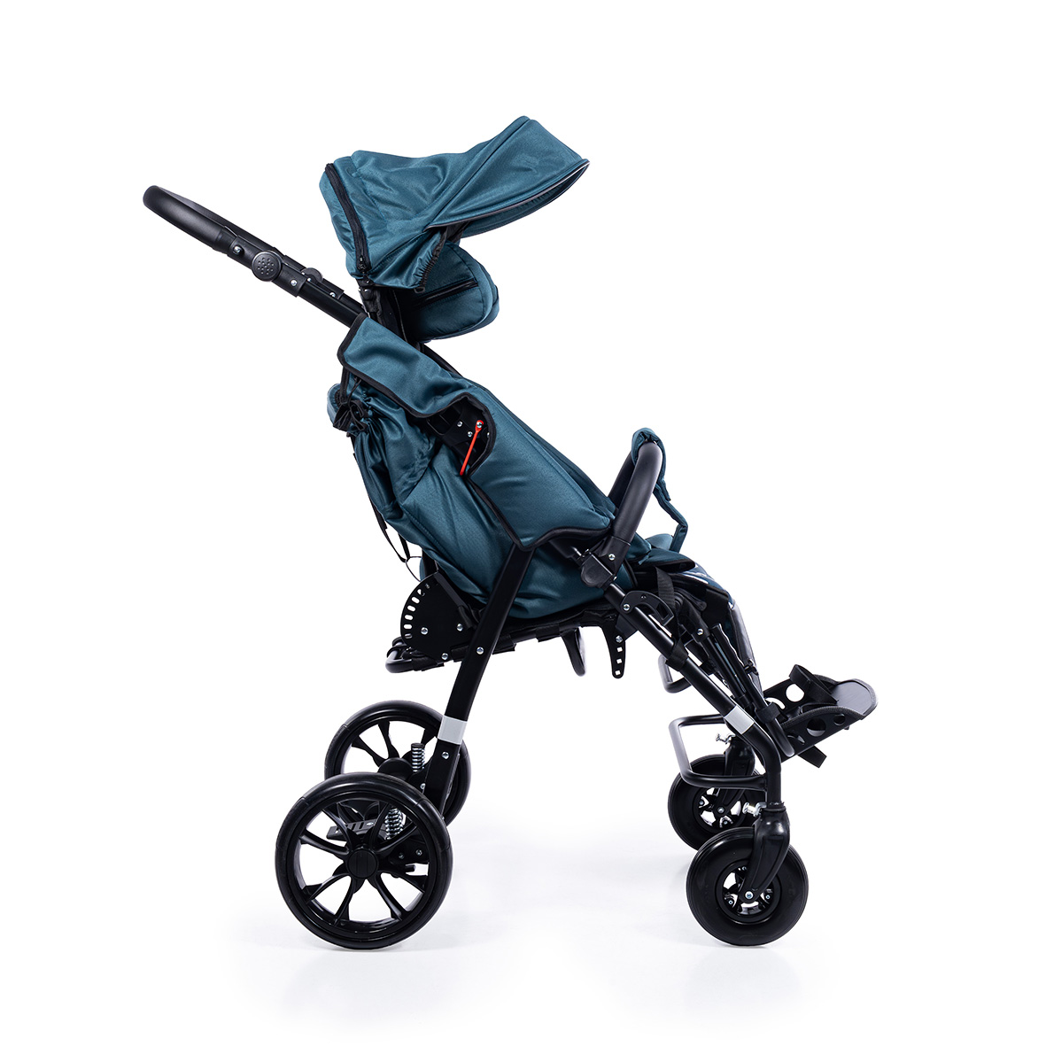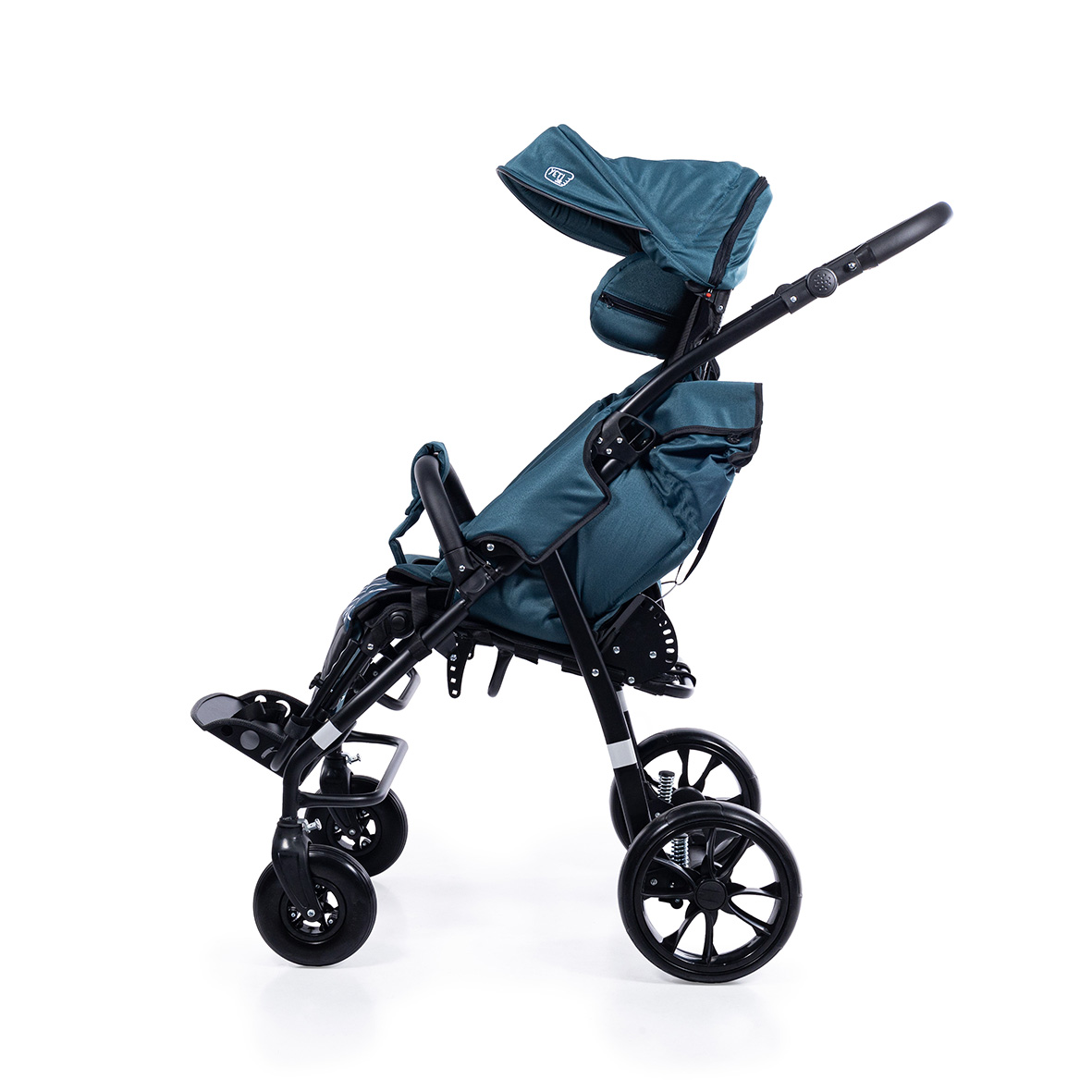 Wózek wyposażono również w system „Rosnę z Tobą”, który dzięki szerokiemu zakresowi regulacji oparcia, siedziska i podnóżka pozwala na idealne dopasowanie do wzrostu i potrzeb dziecka.