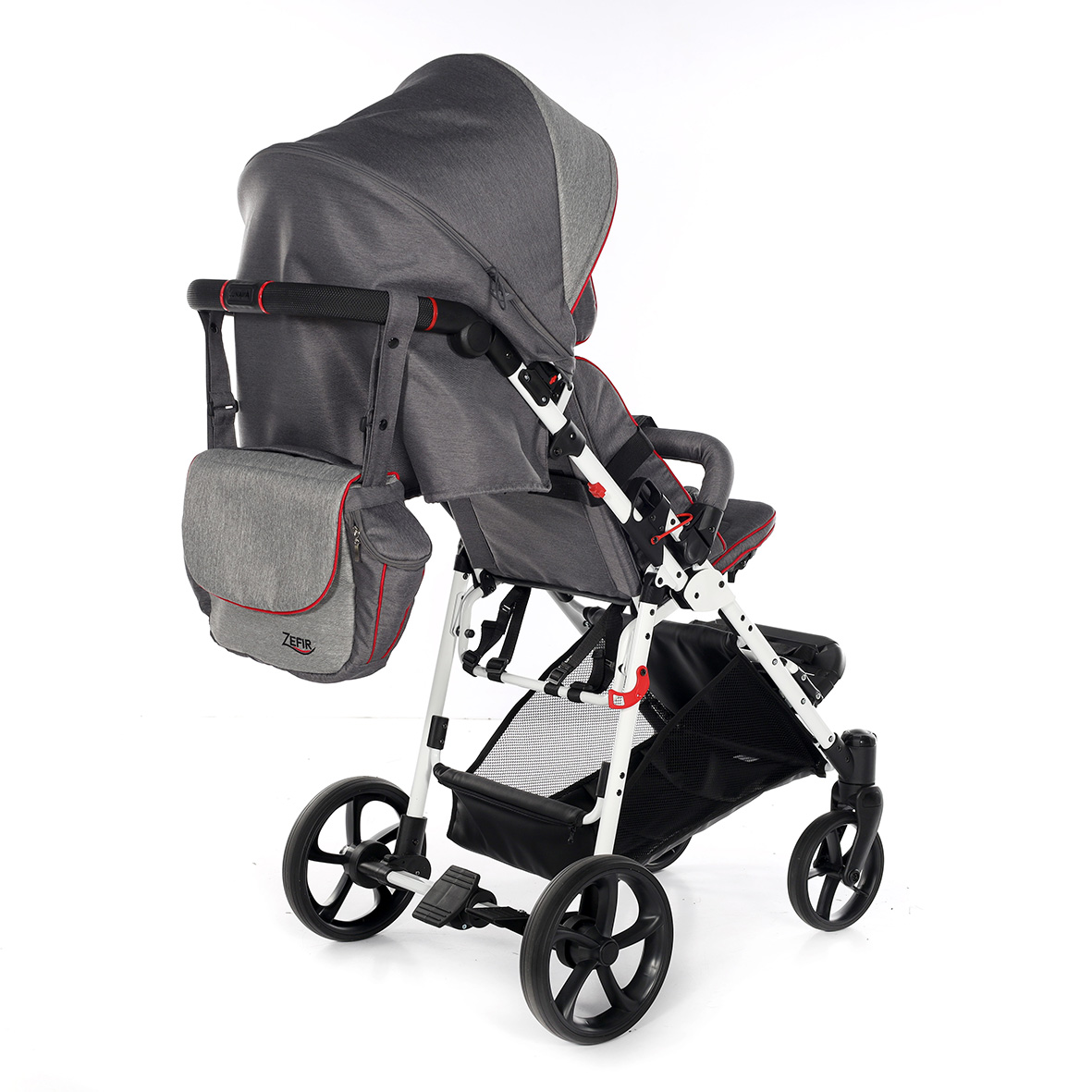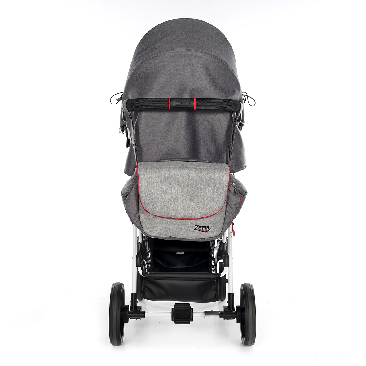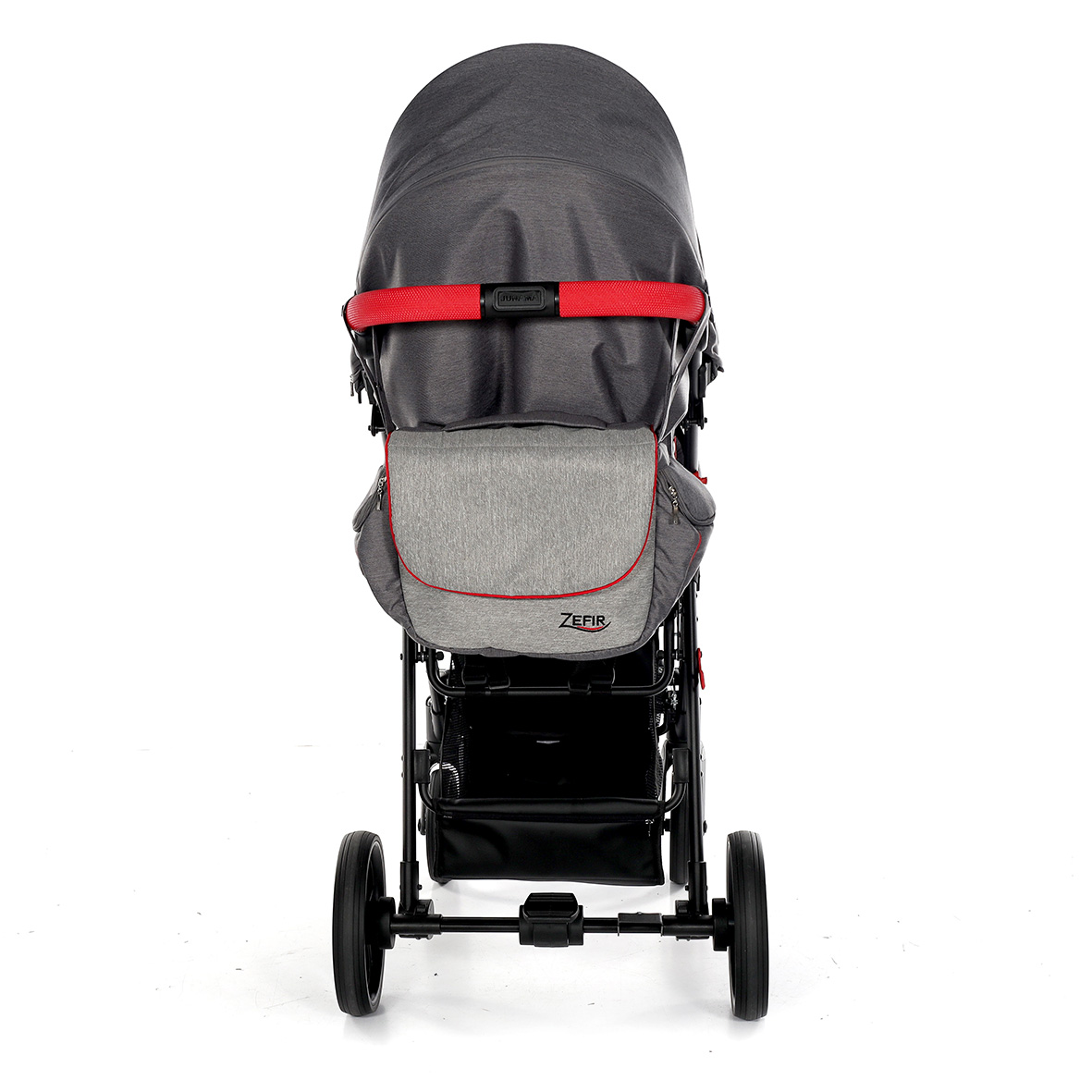Wózek specjalny Zefir, dzięki składanej ramie i intuicyjnemu mechanizmowi, można złożyć szybko i bez demontażu dodatkowych elementów. Lekka konstrukcja zapewnia rodzicom mobilność i wygodę – ułatwia przenoszenie, manewrowanie, transport i przechowywanie.
